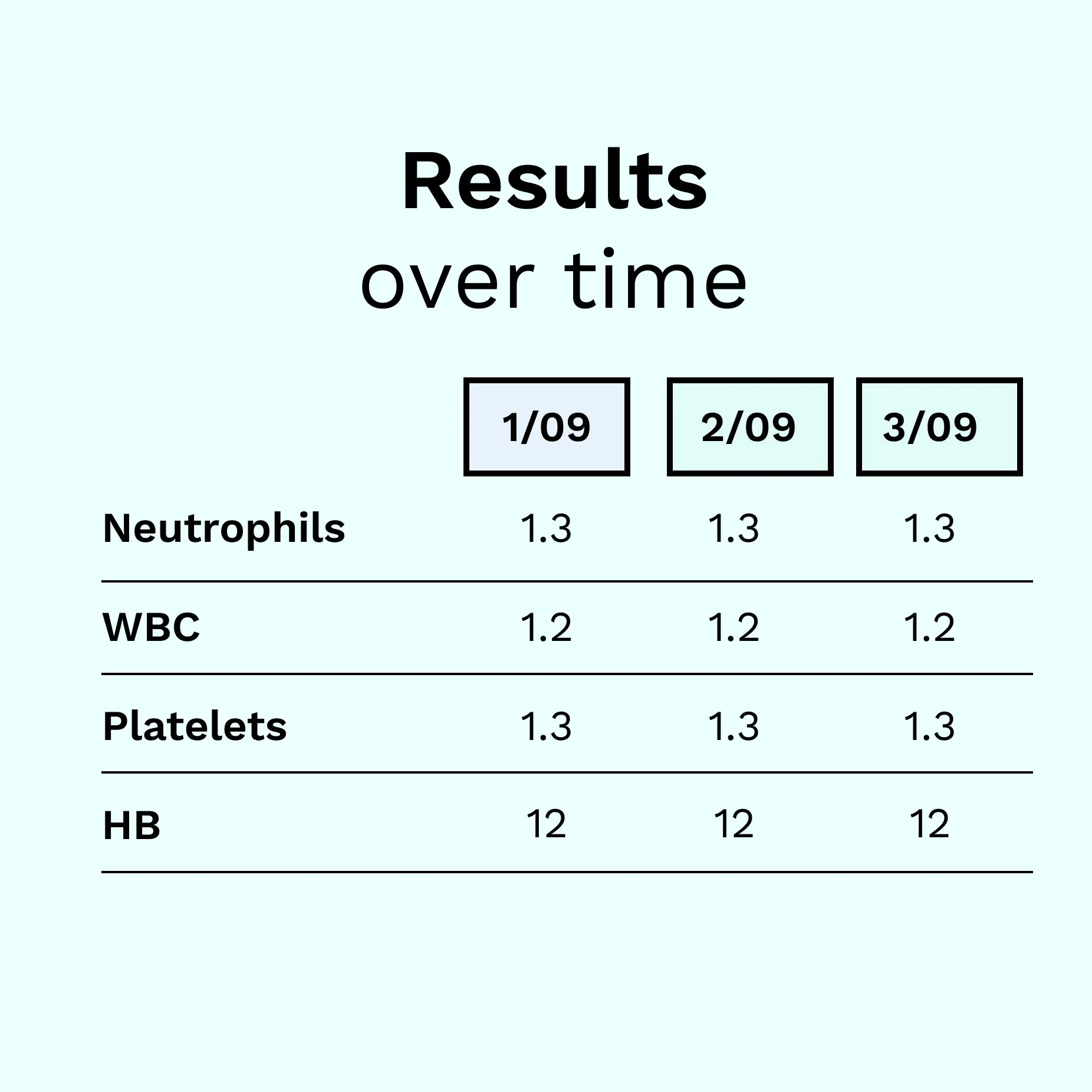 We learned from research that hospitals have a standardized range for healthy blood test results, so we implemented a color warning for out-of-range results and a chip that communicated how long ago the result was taken, as results were only relevant for 48 hours.