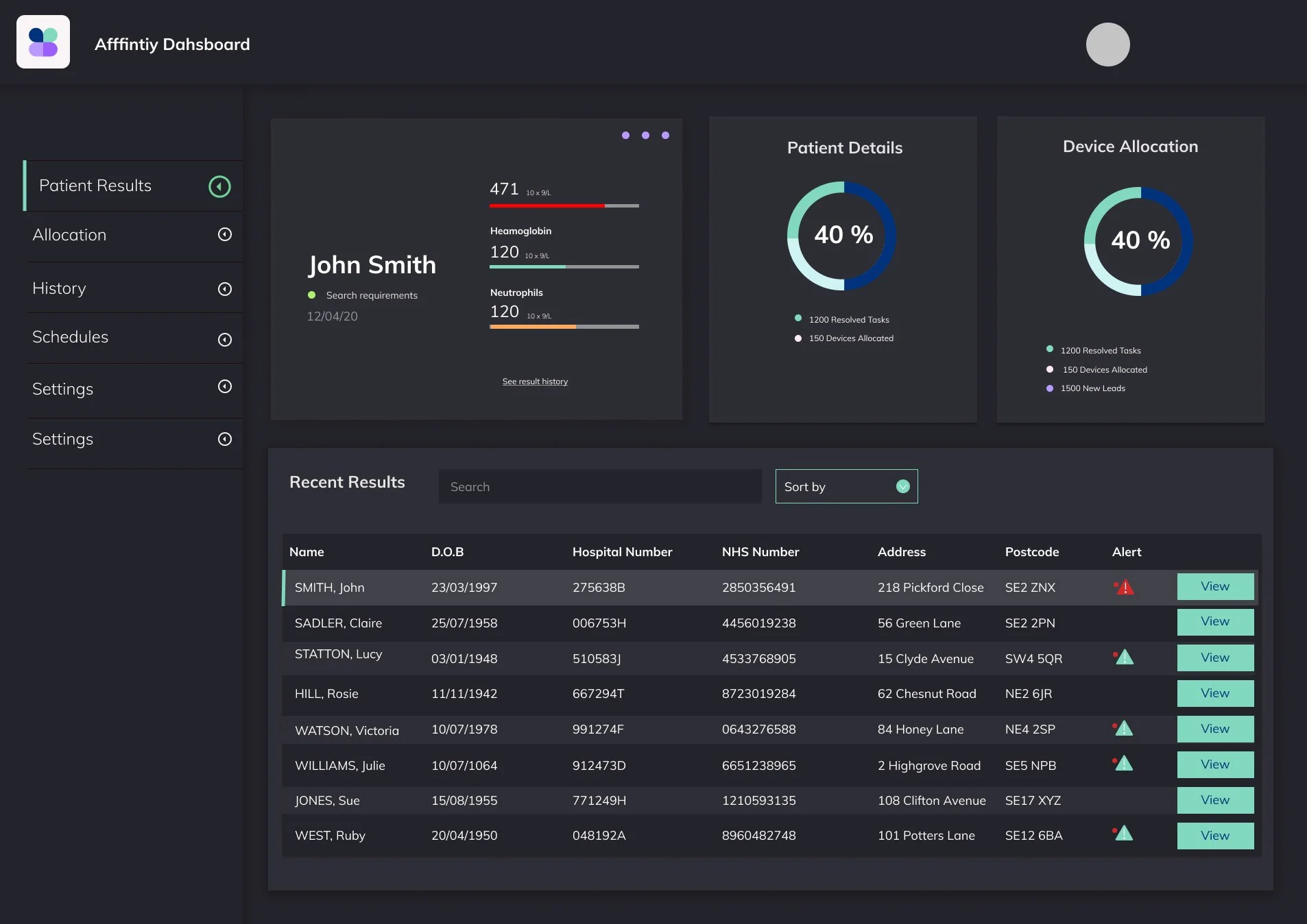 We then developed a more structured prototype in Figma. Testing two concepts where results were available with patient names.