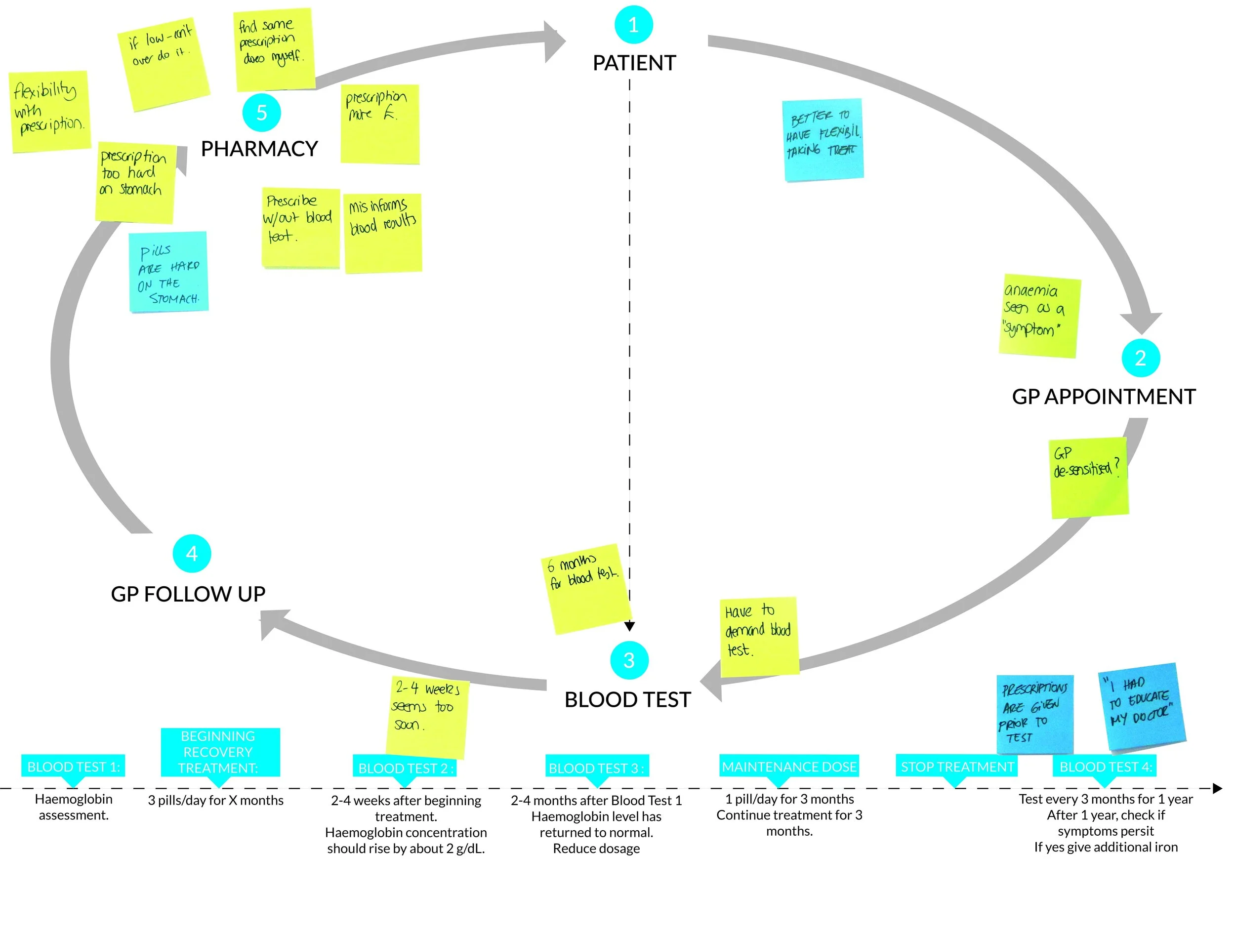 Given this was a new product category, we prioritised de-risking the core behaviour early. We focused on defining and validating the minimum viable experience: Test > Understand > Repeat. We ran continuous research cycles with people living with anaemia, using co-creation methods to uncover both functional and emotional needs.